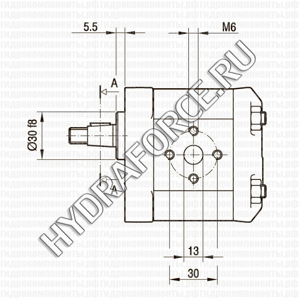 GHP1 шестерёнчатый насос первой группы (1,4 см3 - 13,8 см3), фланец Ø = 30 мм, 73x56 мм (Marzocchi Pompe, Италия)