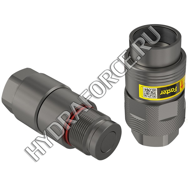 Резьбовые соединения с плоским торцом, применяемые в строительной и другой технике, работающей в сложных условиях. Цинк-никелевое покрытие обеспечивает высокую стойкость к коррозии. Возможно соединение вручную при наличии остаточного давления до 35 МПа в ответной части “папа”. Благодаря встроенному подшипнику, при соединении и отсоединении не происходит перекручивание рукава. Предохранительная втулка предотвращает случайное отсоединение, обусловленное вибрацией узла. Соединения могут комплектоваться пылезащитными колпачками из ПВХ и алюминия. Запатентованная конструкция.